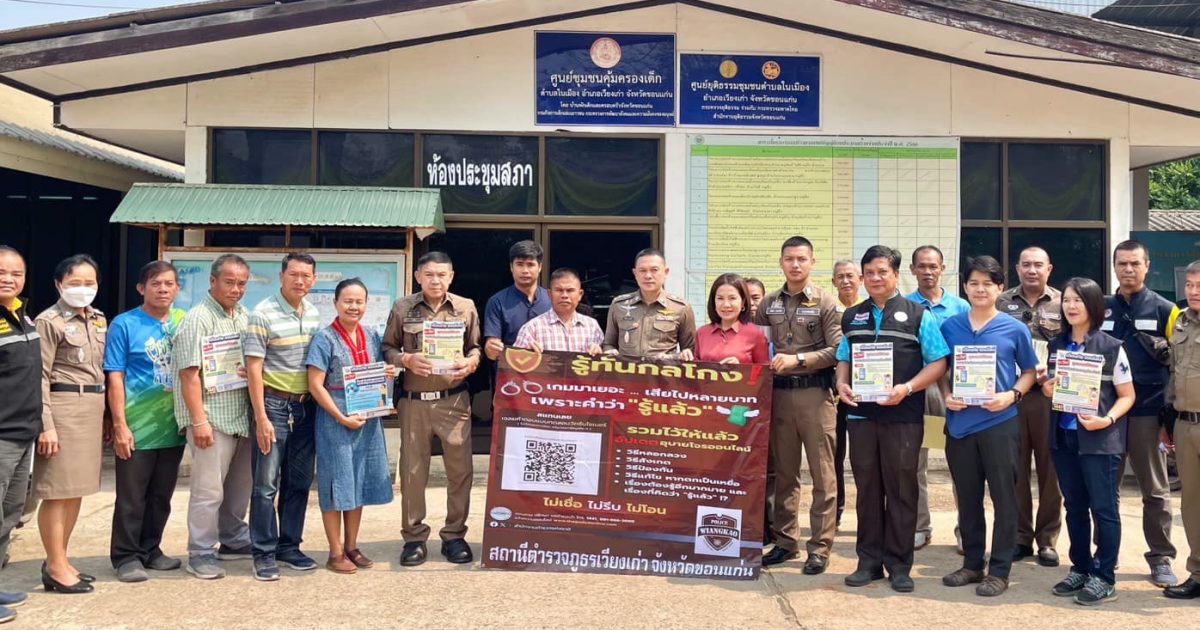 พ.ต.ท.หญิงยลพัชร์ ภูดิศบุญญะนันท์ สว.อก.สภ.เวียงเก่า พ.ต.ต.สุรสิทธิ์ โพธิ์ศรี สวป สภ.เวียงเก่า พร้อมชุดจราจร สภ.เวียงเก่า ร่วมกัน มอบสติ๊กเกอร์ “วินัยจราจร สะท้อนวินัยชาติ” เพื่อประชาสัมพันธ์ รณรงค์ ให้แก่ ผู้นำหมู่บ้าน อสม. และ นายกเทศมนตรีตำบลในเมือง เพื่อนำไปติดประชาสัมพันธ์ ในหมู่บ้าน ชุมชน และสำนักงานที่ทำการเทศบาลตำบลในเมือง เพื่อให้ประชาชนในพื้นที่และบุคลากร ในสำนักงานเทศบาลตำบลในเมือง อ.เวียงเก่า จ.ขอนแก่น ปฎิบัติตามกฎหมายจราจร และตระหนักถึงความปลอดภัย ในการใช้รถ ใช้ถนน