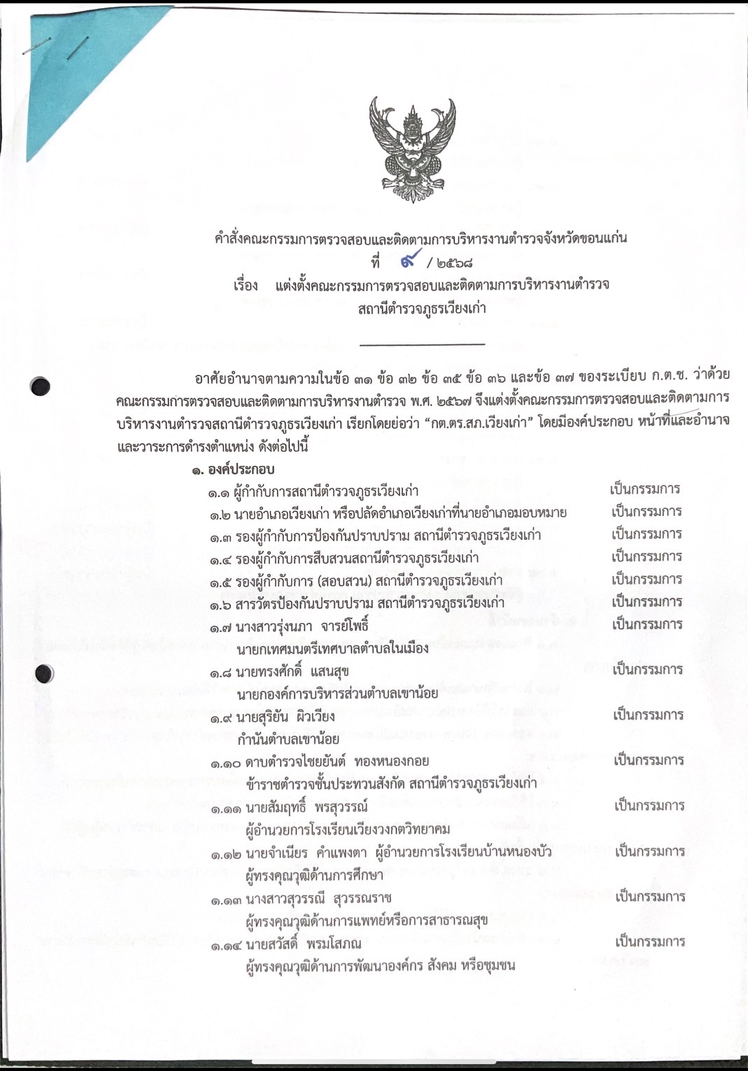 เมื่อวันที่ 11 มีนาคม 2568 เวลา 13.30 น. พ.ต.อ.อติเมธ พลมุข ผกก.สภ.เวียงเก่า และคณะกรรมการตรวจสอบ