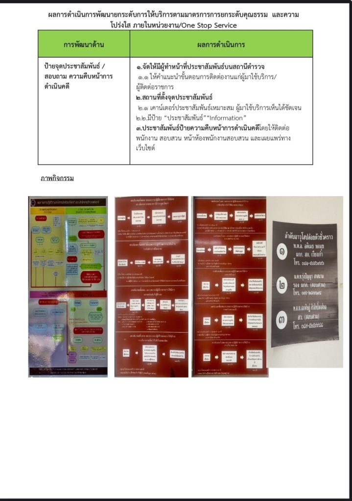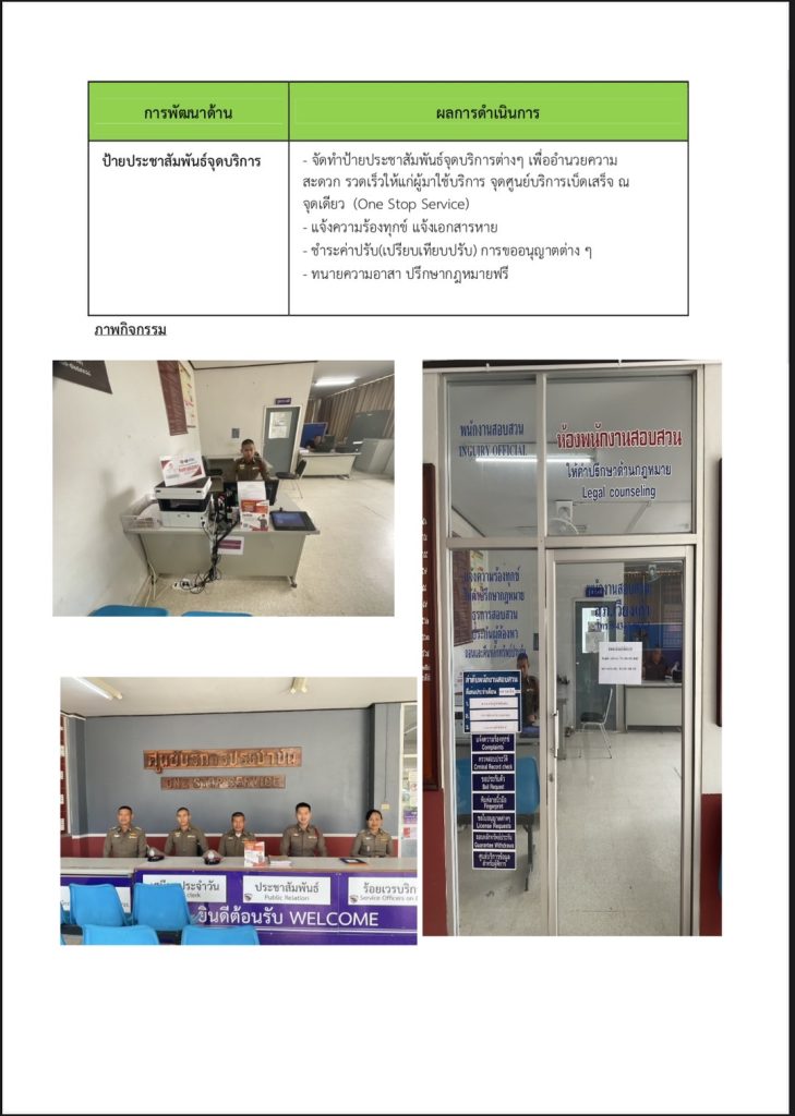 1. การพัฒนายกระดับการให้บริการ One Stop Service เพื่ออำนวยความสะดวกให้กับผู้มารับบริการ