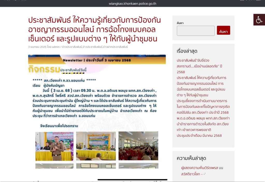 การเผยแพร่บนเว็บไซต์ของสถานีตำรวจภูธรเวียงเก่า